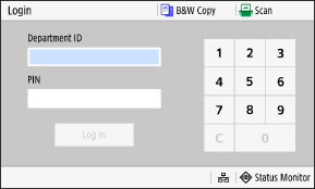 When Department ID Management is set up, the following login screen is displayed. Enter the Department ID to log in. If a PIN is set, enter the PIN.
