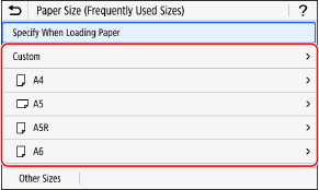You can scroll the screen to view paper sizes (such as envelopes) not displayed on the screen.