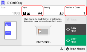 | | You can use the ID Card Copy function to copy the front and back sides of a driver's license or other ID card on the same sheet of paper at 100% magnification. This can be quickly performed from the [Home] screen on the control panel and is convenient, for example, when copying ID cards at reception. |