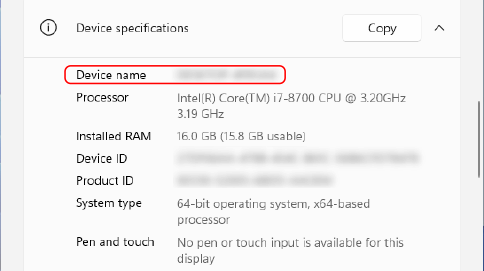 Dalam [Spesifikasi peranti], lihat nama komputer.