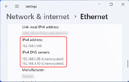 2 | Dalam Properties, lihat alamat IP dan Pelayan DNS. |