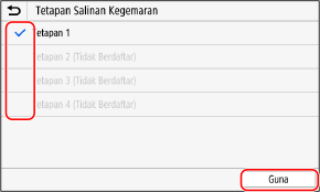 Pilih kotak semak tetapan yang anda ingin jadikan sebagai butang pintasan, dan tekan [Guna].