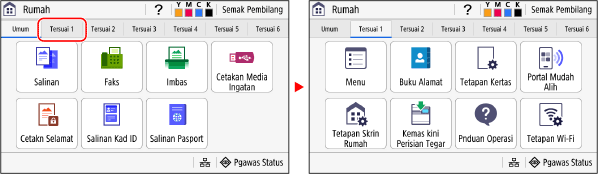 Sentuh skrin dan jentik hujung jari anda. Skrin bergerak mengikut arah anda menjentik jari anda. Contohnya, skrin [Rumah] bergerak ke tab mengikut arah anda menjentik jari anda.