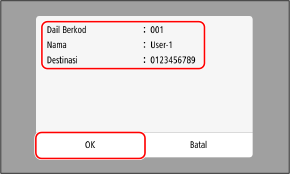 Apabila menentukan destinasi pada skrin imbas atau faks, selain menggunakan senarai destinasi, anda juga boleh memasukkan Dail Berkod untuk menentukan destinasi.