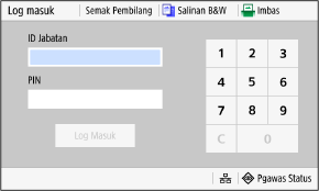 Apabila Pengurusan ID Jabatan ditetapkan, skrin log masuk berikut dipaparkan. Masukkan ID Jabatan untuk melog masuk. Jika PIN ditetapkan, masukkan PIN.