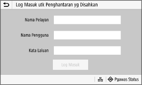Apabila penghantaran disahkan (Pengesahan Pelayan LDAP) ditetapkan, Log masuk untuk skrin Penghantaran Disahkan dipaparkan apabila menjalankan operasi imbasan dan faks. Masukkan nama pengguna dan kata laluan yang diuruskan dengan pelayan LDAP untuk melog masuk.
