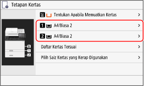 Menetapkan Saiz dan Jenis Kertas untuk Laci Kertas