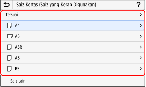 Pilih saiz kertas yang dimuatkan ke dalam laci kertas.