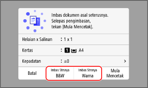 * Anda boleh menekan [Kertas] untuk menukar sumber kertas (kertas yang digunakan untuk menyalin) yang dipilih dalam 4.
