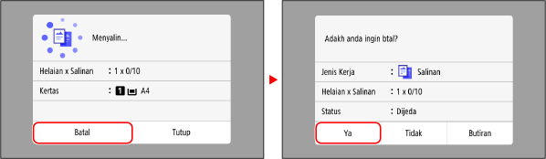 Jika skrin senarai tugas dipaparkan, pilih tugas untuk dibatalkan, dan tekan [Batal]