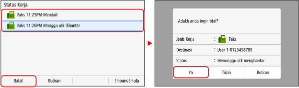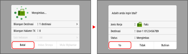 Anda boleh membatalkan penghantaran faks dengan mengikuti arahan di skrin.