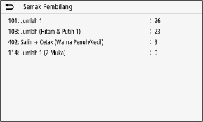 Pada panel kawalan, tekan [Semak Pembilang] di skrin [Rumah].