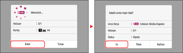 Ikuti arahan pada skrin untuk membatalkan pencetakan.