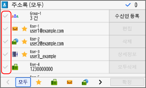 주소록에서 대상 편집 및 삭제(조작 패널)