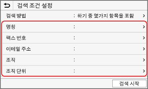 LDAP 서버에서 사용자 정보를 관리하는 경우 조작 패널의 스캔 또는 팩스 화면을 사용하여 해당 정보를 검색하고 대상을 지정할 수 있습니다.