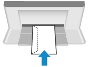 No. 10(COM10), Monarch, ISO-C5, DL 봉투를 앞면(접착하지 않는 면)이 위로 향하게 하여 짧은 면부터 삽입합니다. 덮개를 닫고 왼쪽으로 봉투를 삽입합니다.