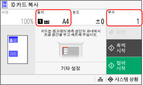 * ID 카드 복사 기능을 사용하여 복사할 때는 배율이 100%로 고정됩니다.