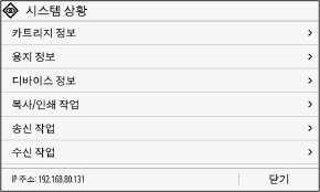 이 화면은 [홈] 화면과 기타 위치에서 [시스템 상황]을 누르면 표시됩니다.