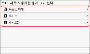 [자주 사용하는 용지 크기 선택] 화면이 표시됩니다.