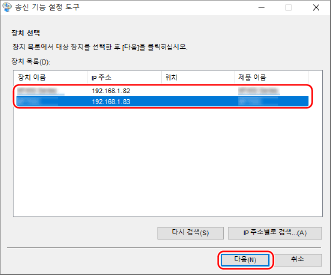 [장치 목록]에서 기기를 선택하고 [다음]을 클릭합니다.