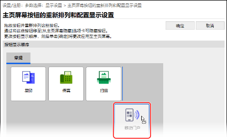 在 [主页屏幕按钮的重新排列和配置显示设置] 中,选择 [在按钮视图中编辑] 或 [在列表视图中编辑]。