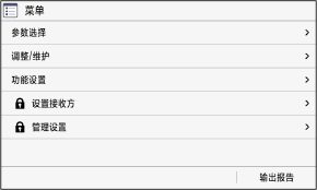 此屏幕将在按下 [主页] 屏幕上的 [菜单] 后显示。使用此屏幕可以配置机器的各项设置。