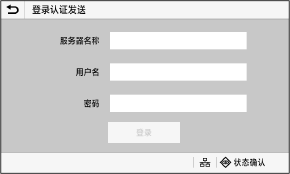 如果设置了验证发送(LDAP 服务器验证),执行扫描和传真操作时会显示验证发送的登录屏幕。请输入通过 LDAP 服务器管理的用户名和密码进行登录。