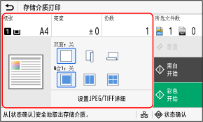 在操作面板上,按下 [主页] 屏幕中的 [存储介质打印]。