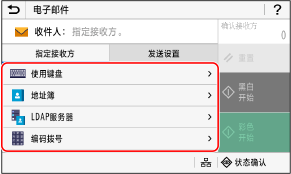使用 [地址簿] 或 [编码拨号] 指定抄送或密件抄送目的地。