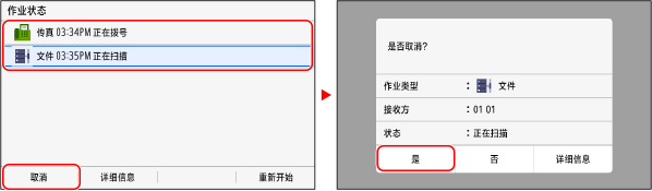 如果显示作业列表屏幕,请选择要取消的作业,然后按下 [取消]