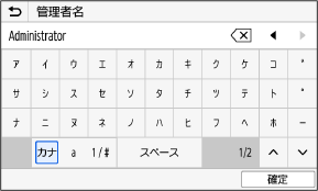 管理者名など、漢字やひらがなを入力する必要がある場合は、リモートUIで操作します。パソコンによる本機の管理 - リモートUI |