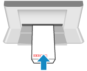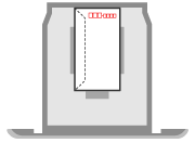 封筒のふたを左側にして、閉じた状態で差し込みます。