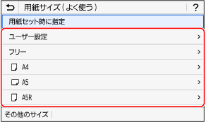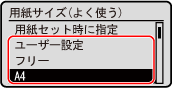 を押し、表示された一覧から用紙サイズを選択します。