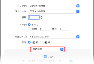 プリントオプションのポップアップメニューから[用紙処理]を選択する