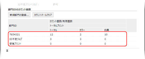 [部門IDのカウント面数]で、使用状況を確認する