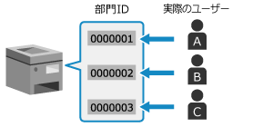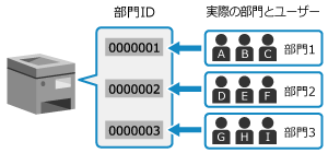 部門別ID管理とは、本機を使用するユーザーまたはグループに「部門ID」を割り当てて管理する機能です。