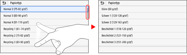 Wenn die Bildlaufleiste auf dem Bildschirm erscheint, bedeutet dies, dass bestimmte Elemente oder Informationen nicht vollständig auf dem Bildschirm angezeigt werden können. Streichen oder ziehen Sie mit Ihrer Fingerspitze über den Bildschirm, um ihn in die gewünschte Richtung zu verschieben.