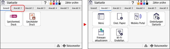 Wenn Sie auf eine Registerkarte tippen, wird der Bildschirm für die ausgewählte Registerkarte angezeigt.
