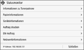 Entfernen des USB-Speichergeräts [IP-Adresse]Zeigt standardmäßig die IPv4-Adresse des Geräts an. Sie können diese Anzeige ausblenden.