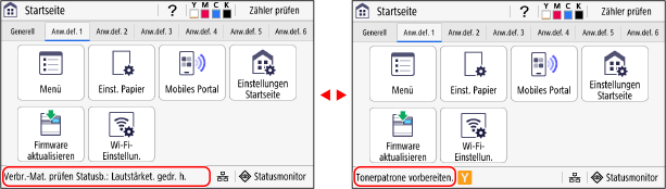 ] auf dem Bedienfeld drücken. Standardmäßig wird der Bildschirm [Startseite] nach dem Einschalten der Stromversorgung und unmittelbar nach dem Schließen des Startbildschirms sowie unmittelbar nach der Anmeldung angezeigt.