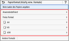 Drücken Sie [Andere Formate], und wählen Sie das Papierformat aus der angezeigten Liste.