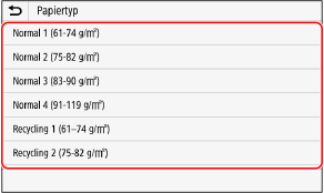 Wählen Sie den zu registrierenden Papiertyp.