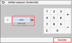 Geben Sie den Justagewert ein, und drücken Sie [Anwenden].