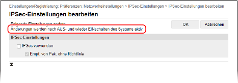 Überprüfen von Nutzung und Protokollen mit Remote UI [Einstellungen/Registrierung] Klicken Sie auf diese Schaltfläche, um den Bildschirm [Einstellungen/Registrierung] anzuzeigen. Wenn Sie sich im Administratormodus angemeldet haben, können Sie alle Einstellungen ändern und Vorgänge wie das Speichern und Importieren von Daten durchführen. Die Elemente, die auf dem Bildschirm [Einstellungen/Registrierung] eingestellt werden können, sind fast dieselben wie auf dem Bedienfeld, jedoch können einige Elemente nur über das Bedienfeld oder über Remote UI eingestellt werden. Elemente des EinstellungsmenüsJe nach Element müssen Sie das Gerät möglicherweise neu starten, damit die Einstellungen übernommen werden können. Wenn ein Neustart erforderlich ist, wird oben auf dem Bildschirm eine Meldung angezeigt. |