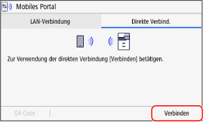 1 | Drücken Sie auf der Registerkarte [Direkte Verbind.] auf [QR-Code]. Es wird ein QR-Code angezeigt. |
