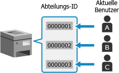 Die Verwaltung per Abteilungs-ID ist eine Funktion zur Verwaltung von Benutzern und Gruppen, indem jedem Benutzer bzw. jeder Gruppe eine Abteilungs-ID zugewiesen wird.