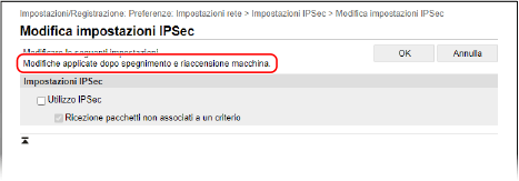 Verifica dell’utilizzo e dei registri con la IU remota [Impostazioni/Registrazione] Fare clic su questa voce per visualizzare la schermata [Impostazioni/Registrazione]. Se è stato effettuato l'accesso con il Modo amministratore, è possibile modificare qualsiasi impostazione ed eseguire operazioni come il salvataggio e l'importazione di dati. Le voci impostabili nella schermata [Impostazioni/Registrazione] sono praticamente uguali a quelle del pannello di controllo, ma alcune voci possono essere impostate solo con la IU remota oppure solo dal pannello di controllo. Voci del menu ImpostazioniA seconda della voce, potrebbe essere necessario riavviare la macchina per applicare le impostazioni. Se è necessario riavviarla, viene visualizzato un messaggio nella parte superiore dello schermo. |