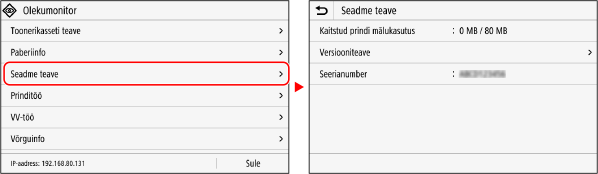 Kui puudutate üksuse nime või nuppu, saab selle valida. Valitud kuva avatakse või valitud funktsioon teostatakse.
