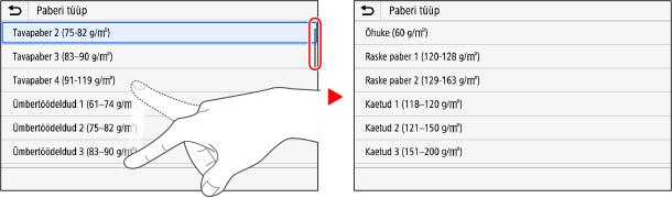 Kui ekraanile ilmub kerimisriba, näitab see, et seal on üksusi või teavet, mida ei saa tervikuna ekraanil kuvada. Libistage või lohistage ekraani sõrmeotsa liigutamise suunas.