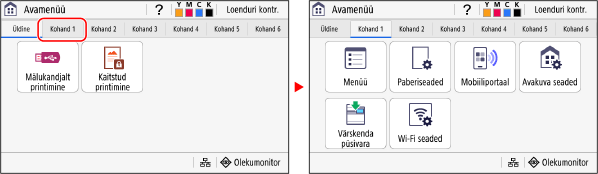 Puudutage ekraani ja libistage sõrmeotsa. Ekraan liigub sõrmega libistamise suunas. Näiteks kuva [Avamenüü] liigub sõrmega libistamise suunas asuvale vahekaardile.